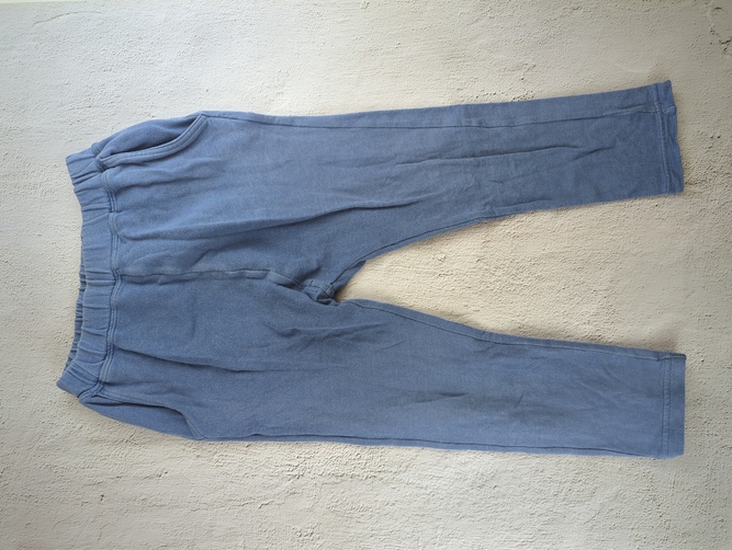 アラジンパンツなシルエットのスウェットパンツです。ひざ下まで上げるとショートで使えると思います。記事は薄手です。
