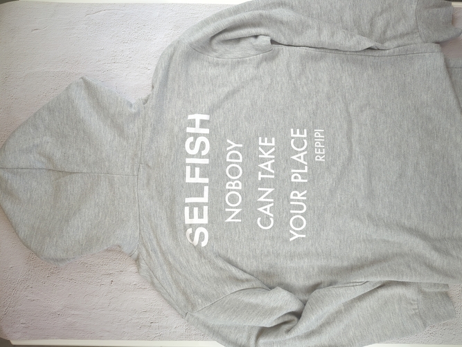 ロングな着丈と首の紐がかわいいrepipi armarioのパーカーです。生地は薄め、サイズ表記はSです。