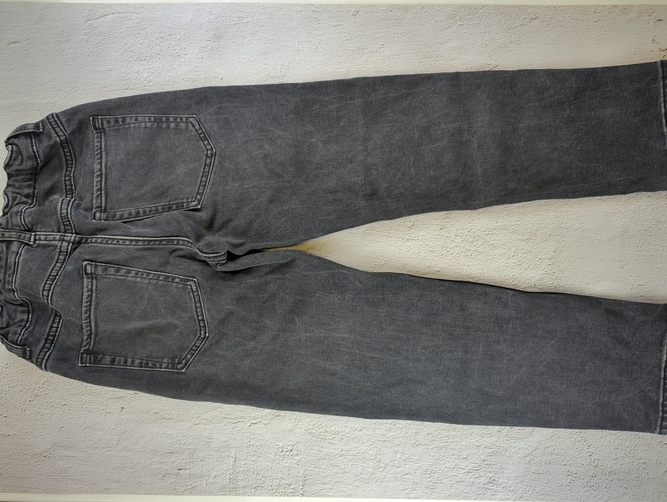 H&Mのストレッチデニムパンツ、ブラックです。サイズ表記はEUR 134、US 8です。