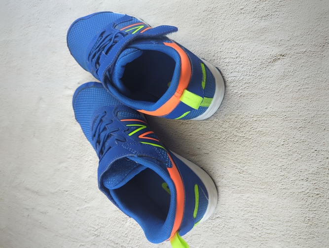 ブルーに蛍光色ラインがかっこいいNew Balanceのスニーカーです。サイズは23.5cmです。