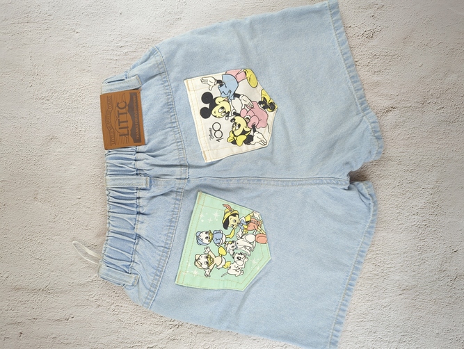 Disney 100のタキヒヨー株式会社のデニムショートパンツです。薄手なので履き心地良さそうです。