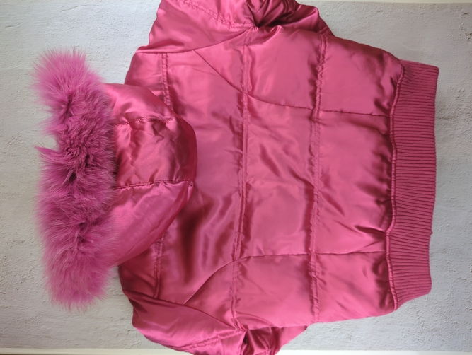 ピンクが鮮やかLUCCICAジャンパーです。フードは脱着可能、サイズ表記はM(154~162)です。