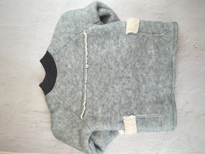グレー x ホワイトで優しい雰囲気のBREEZEのジャンパーです。軽くて動きやすそうです。
