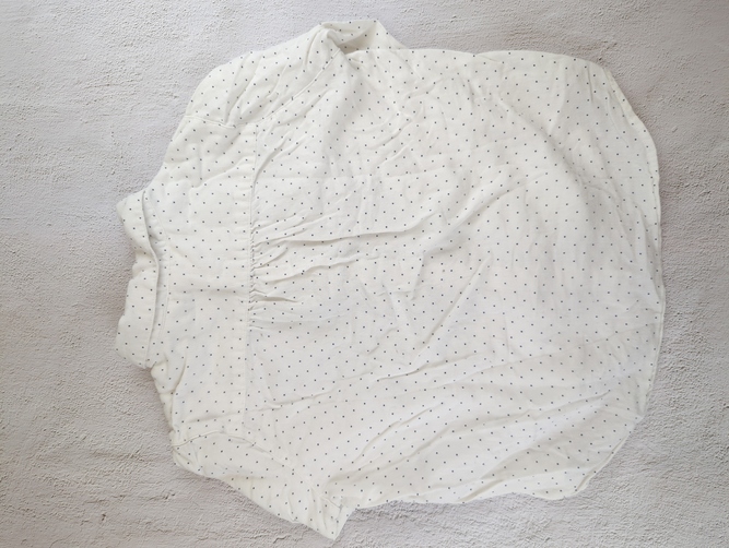 ドットがかわいいUNIQLOのシャツです。ガーゼのような生地です。