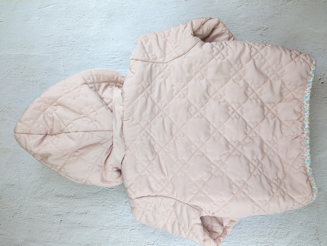 ELFIN DOLLのコート & ジャンパーです。サイズ表記は95です。キルティングなデザインで、裏地は起毛、中綿少な目の薄手です。