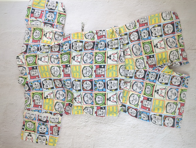 キャラクターいっぱいThomas & Friendsの甚平です。サイズ表記は95です。夏祭りが楽しくなりそうですね!