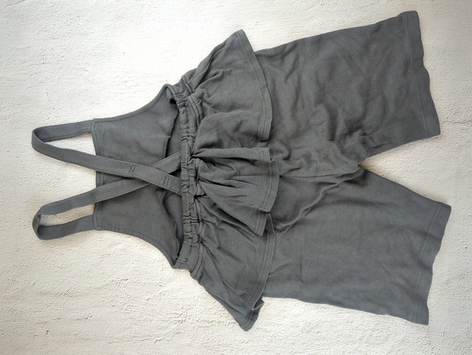 ひらひらがかわいい千趣会のオーバーオールタイプのスウェットパンツです。