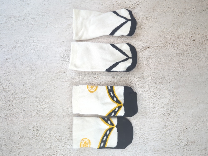 お食い初め、お宮参りなどに使えそうなカバーオールです。ソックス2種類セットです。