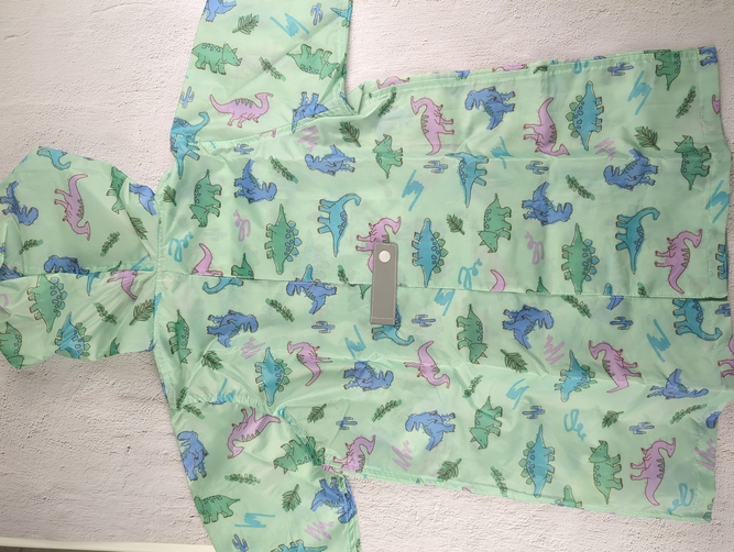 恐竜プリントが素敵なBREEZEのレインコートです。実際のサイズ表記は90-100です。